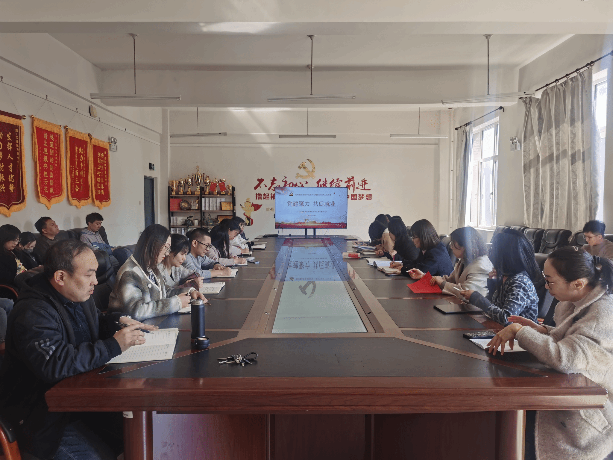 会上,葛述苹分析了当前就业形势,强调了党建工作在促进就业中的重要作用。她指出,要把党建工作与就业工作紧密结合起来,通过党建活动加强与企业之间的交流合作,为学生提供更多的就业机会和就业平台。随后,与会人员围绕如何加强党建引领、促进毕业生就业展开了讨论。大家一致认为,要进一步突出党员教师和教师党支部发挥的作用,通过党员教师的言传身教,引导学生树立正确的就业观念。同时,还要加强校企合作,拓宽就业渠道,为学生提供更多的就业机会。
