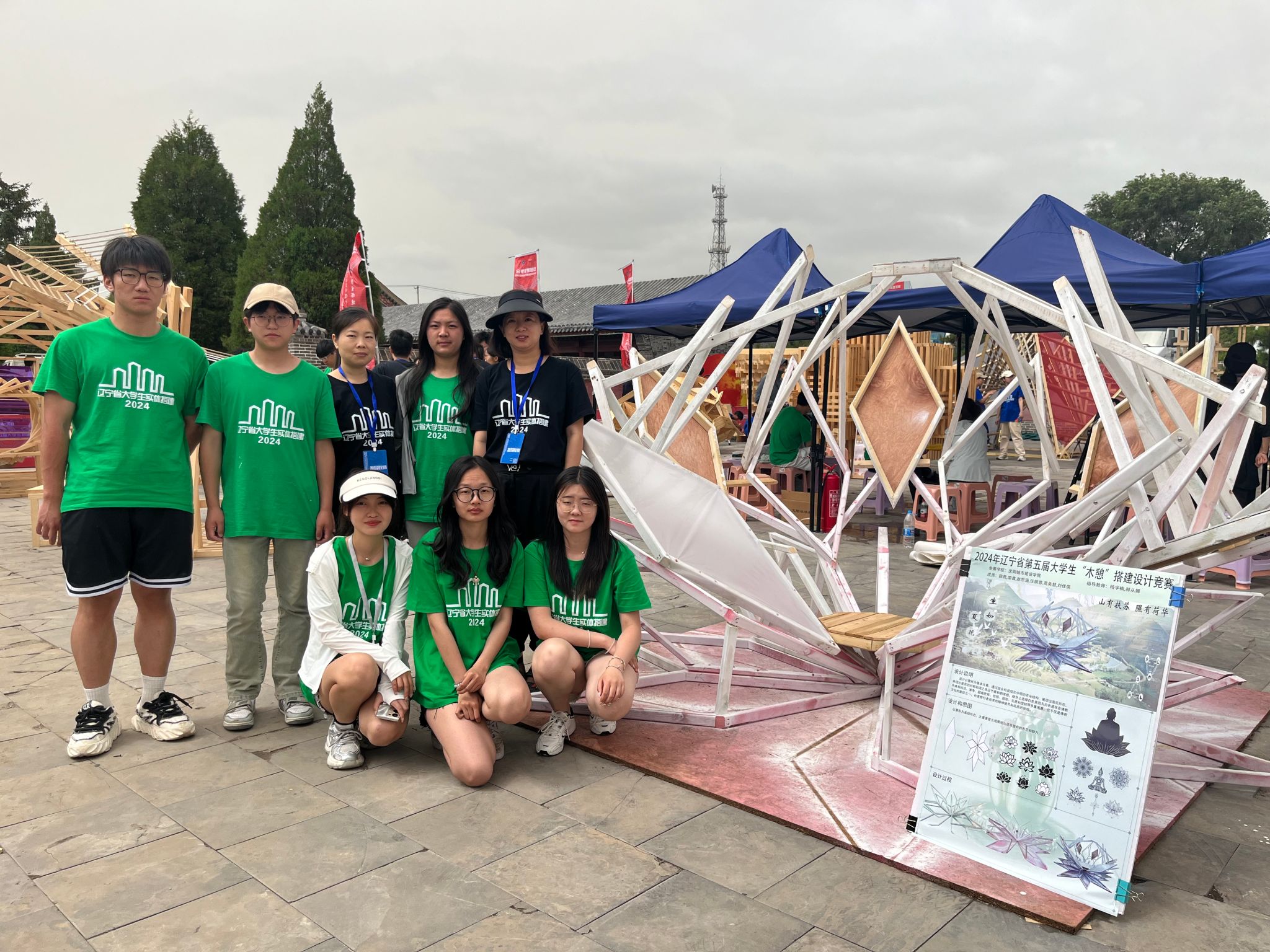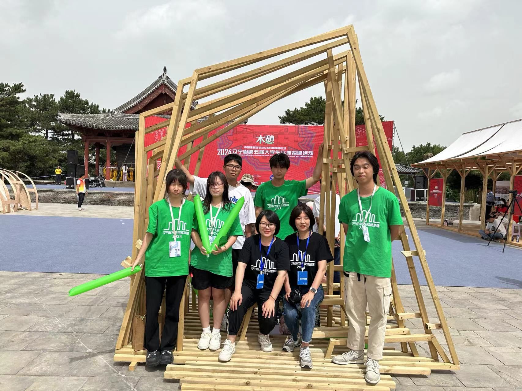 近日,由辽宁省教育厅和世界华人建筑师协会主办,沈阳建筑大学、中共义县委员会、义县人民政府承办的2024辽宁省第五届大学生搭建设计竞赛在辽宁省锦州市义县奉国寺举行。bv伟德国际1946共选派3支参赛团队参加决赛,由学院教师李诗、王谦辞指导,唐雪、孙亚男等六名学生完成的作品《穹顶秘境》荣获二等奖;教师李诗、安华指导,穆许可、刘鑫等六名学生完成的作品《栊岚》荣获优秀奖;教师杨宇楠、郝从娜指导,陈乾,赵思涵等六名学生完成的作品《生如夏花》荣获优秀奖。