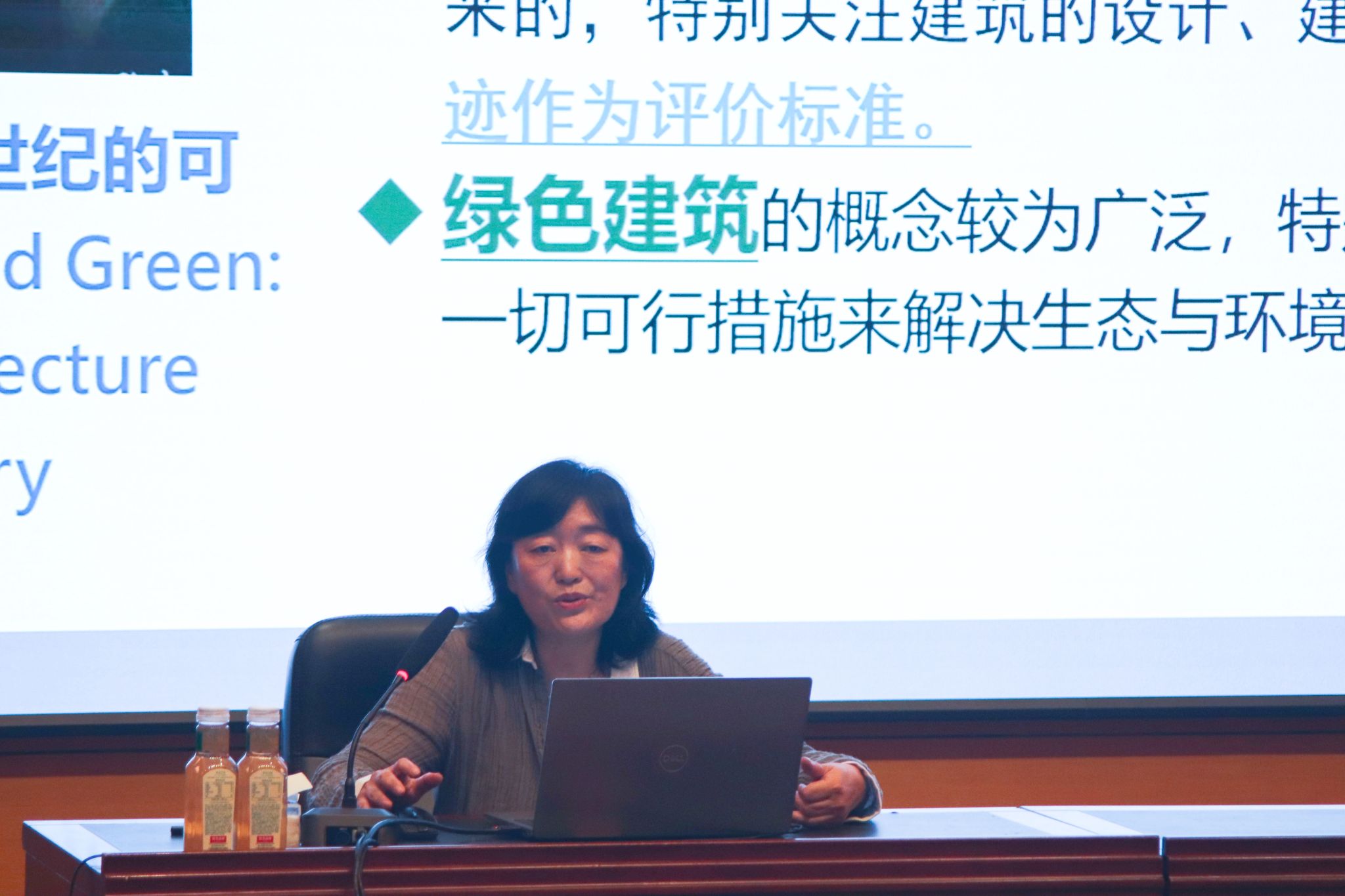 会上,安艳华从国内外行业发展趋势和国家政策法规导向出发,为广大师生深入解读了绿色建筑、节能建筑、可持续建筑等理念的溯源及应用范围。通过实际案例,她详细讲解了绿色建筑材料产品类型和绿色技术应用等内容,有效拓宽了学生的知识范畴。此外,安艳华还展示并解析了多个绿色建筑设计竞赛作品,为课程结合竞赛的开展以及学生作业质量的提升和拓展提供了重要的理论支撑。