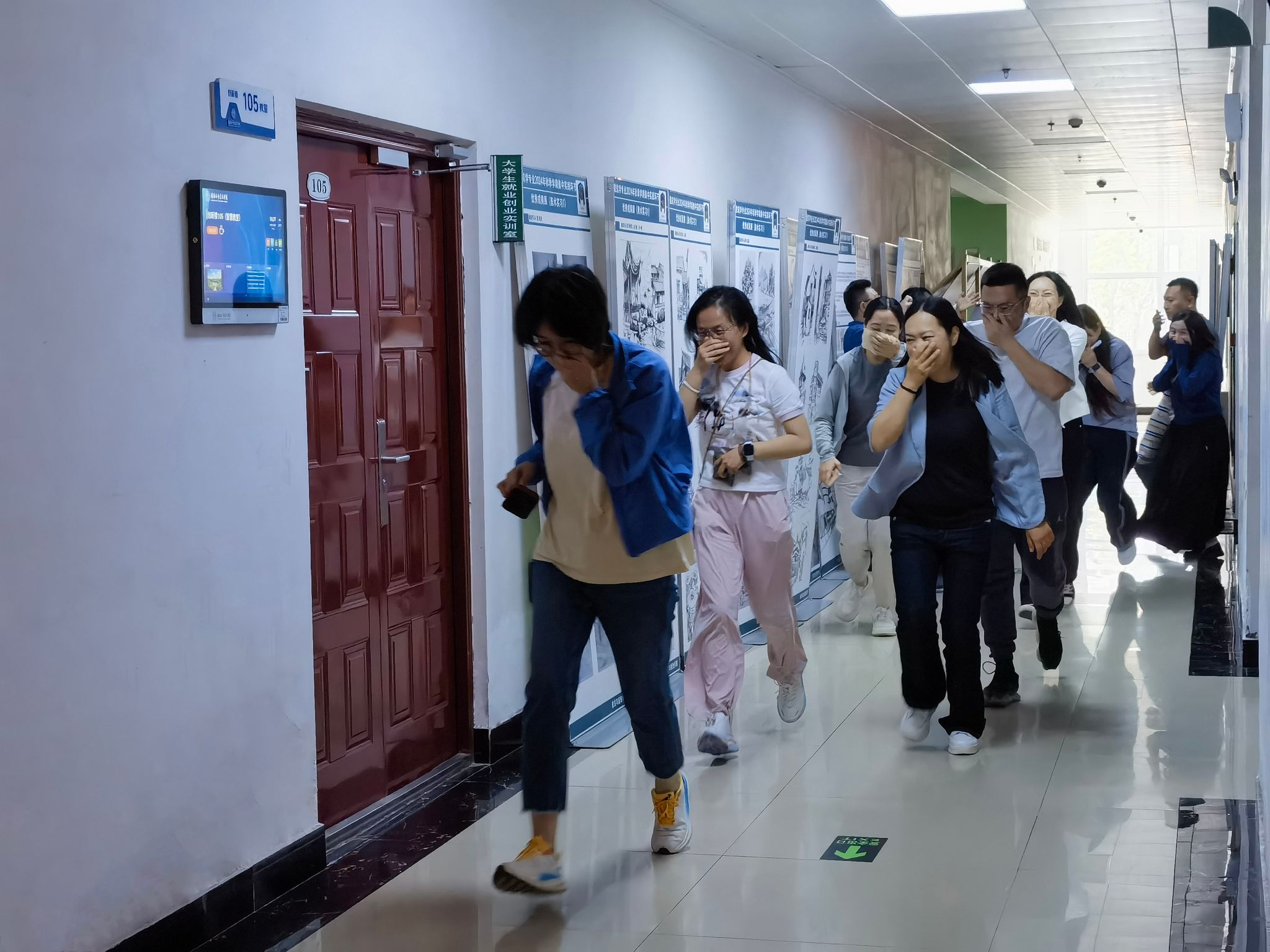 演练环节真实模拟火灾现场环境,烟雾装置触发,火警铃声响起,疏散组迅速行动,各楼层疏散教师第一时间到达指定点位,按照“高楼层优先疏散,严禁使用电梯”的原则,引导师生沿着标识路线有序逃生。教师撤离后,疏散教师仔细检查本楼层教室、卫生间,确保无滞留人员。短短五分钟,全体师生便安全集结至指定位置,展现出高效的应急反应能力与良好的安全素养。