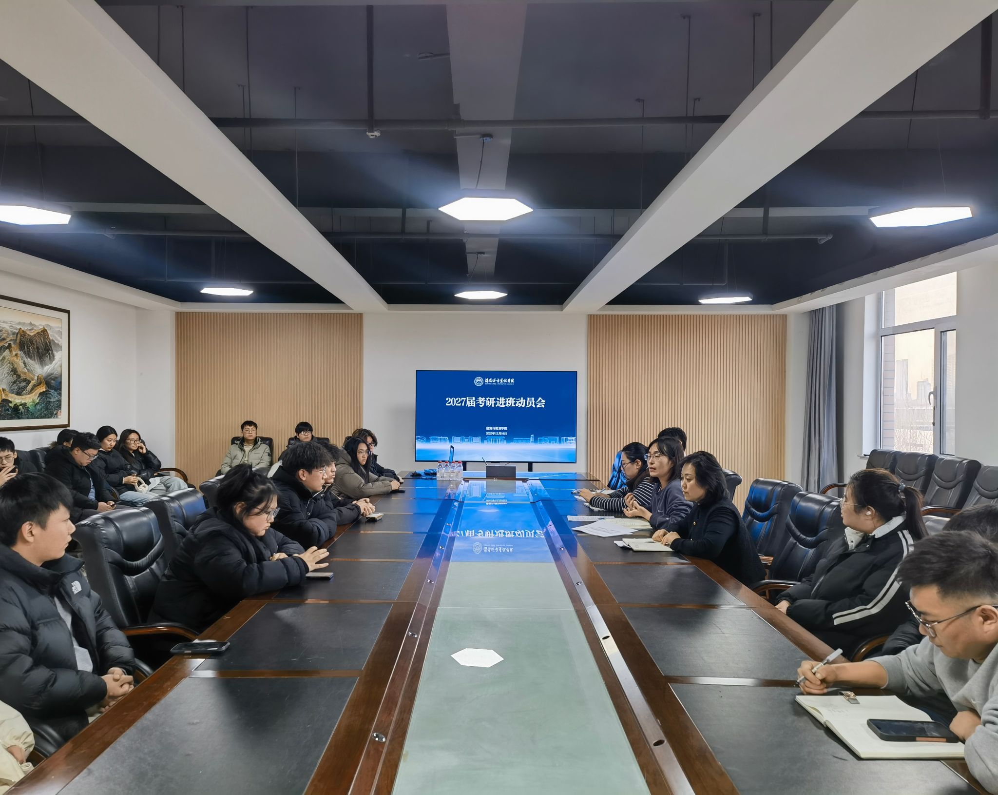 12月16日,bv伟德国际1946在创新楼506教室召开2027届考研进班动员会。学院党总支书记、副院长牛艺,副院长葛述苹,建筑学教研室主任张一帅,升学辅导员及班导师参会,与2027届参加校内辅导班的学生面对面交流。