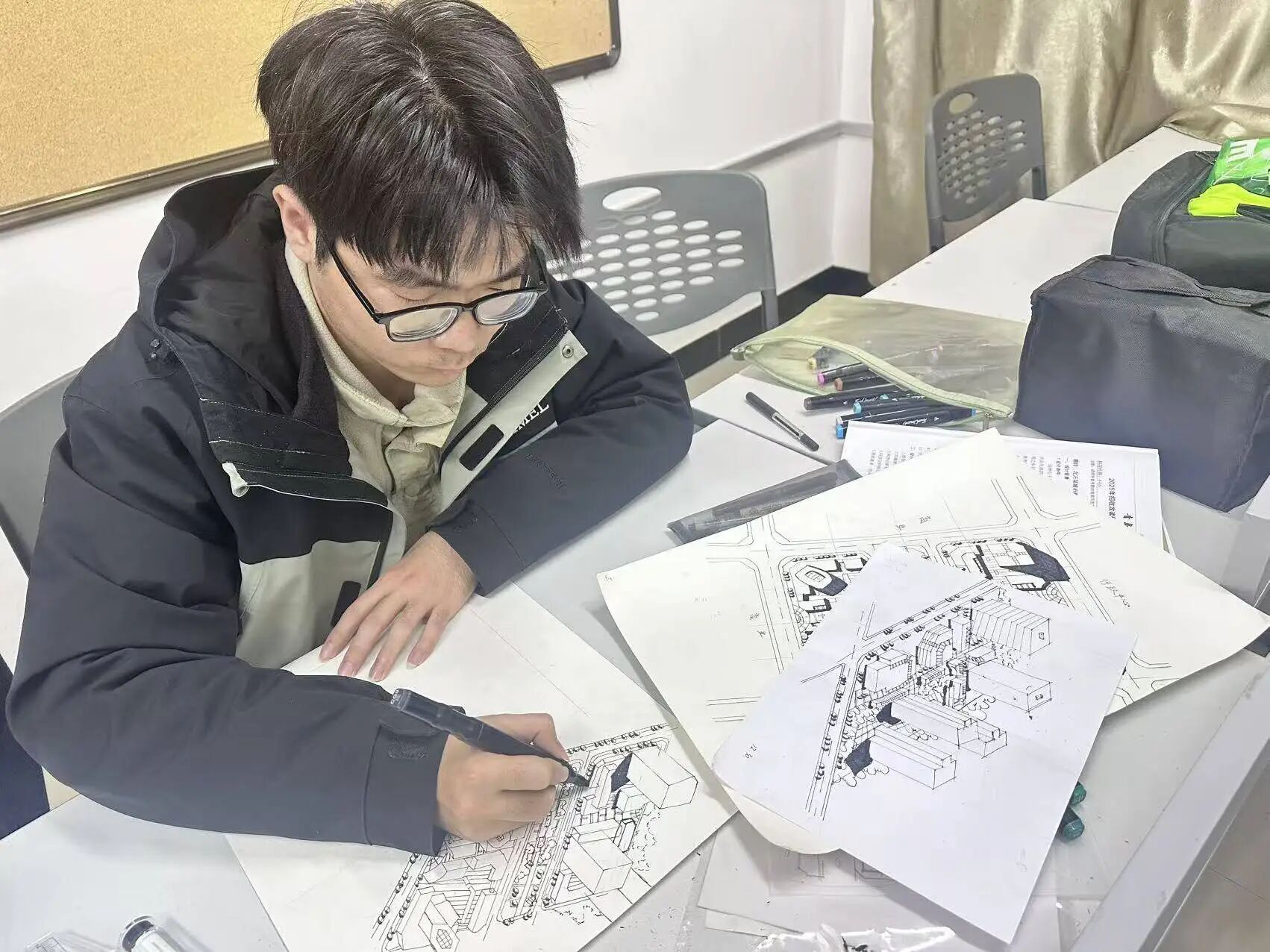 本次集训紧扣建筑学、城乡规划专业考研核心要求,学院联合机构定制精细化、差异化教学方案,确保培训的针对性与实效性。建筑学专业聚焦快题设计与理论核心考点,快题课程围绕场地设计、平剖立面设计、效果图与分析图绘制开展分层教学,通过案例拆解、领画演示、实战成图强化学生应试能力;理论课程系统覆盖中外建筑史、建筑设计原理、建筑构造等核心科目,全面夯实学生理论知识基础。城乡规划专业同步推进集训教学,快题课程拆解居住区、城市更新、产业园等专题的设计流程与制图规范,理论课程系统讲解中外城建史、城市规划原理等核心内容,帮助学生吃透考点、掌握解题技巧。